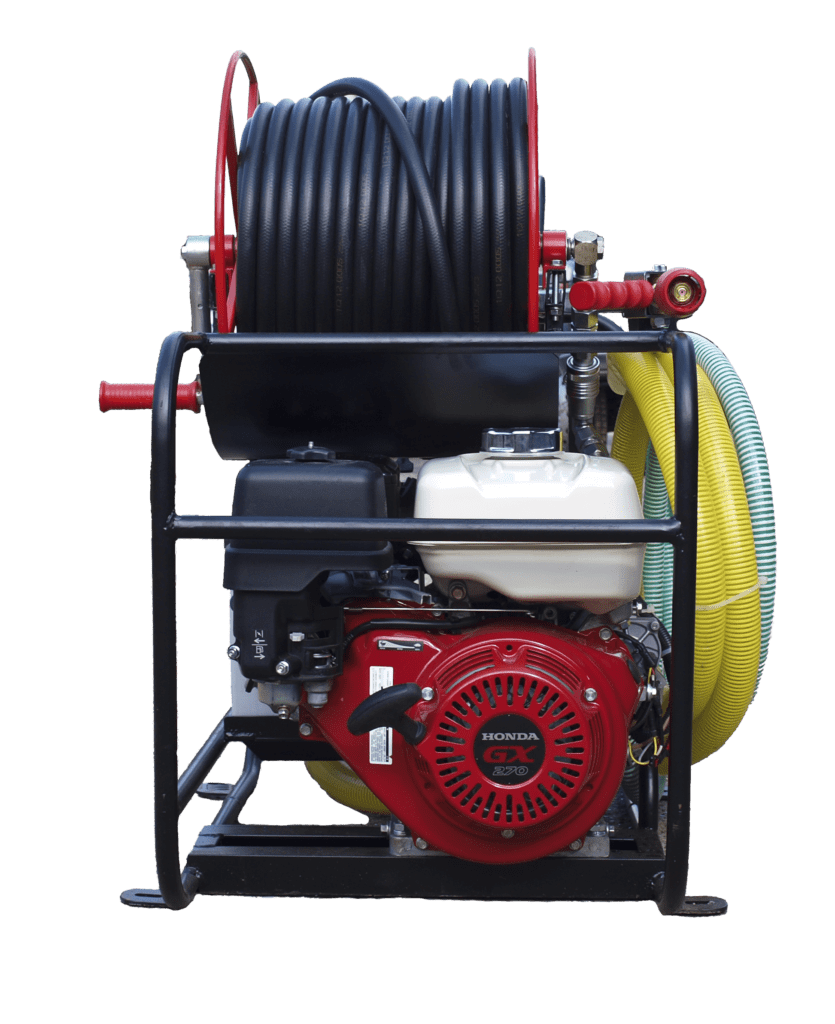 Функционально состоит из входной (всасывающей) магистрали, магистрали сброса излишнего давления, высоконапорной магистрали подачи огнетушащего состава (жидкости) и низконапорной магистрали подачи огнетушащего состава (жидкости). Конструктивно состоит из металлической рамы с установленной бобиной и намотанным на неё шлангом (рукавом) высокого давления, аккумулятором. На раме так же установлены двигатель, насос высокого давления, регулятор давления с манометром, ствол высокого давления. Все узлы и агрегаты УПВД смонтированы на единой раме.